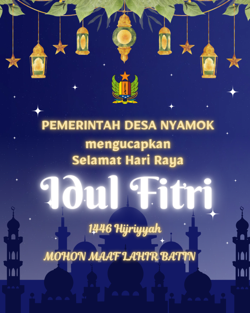 Terbaru Selamat Hari Raya Idul Fitri 1446 H admindesanyamok 30 March 2025 About Author admindesanyamok See author's posts Continue Reading Previous Previous post: Selamat Hari IbuNext Next post: Pengibaran Bendera Merah Putih Leave a Reply Cancel replyYour email address will not be published. Required fields are marked *Comment * Name * Email * Website Save my name, email, and website in this browser for the next time I comment. Δ Related News Pengibaran Bendera Merah Putih 1 August 2025 Selamat Hari Ibu 22 December 2024